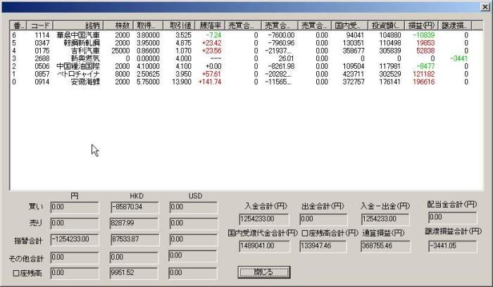ここで、銘柄ごとの損益や、譲渡損益、口座残高、配当金の合計などが確認できます。