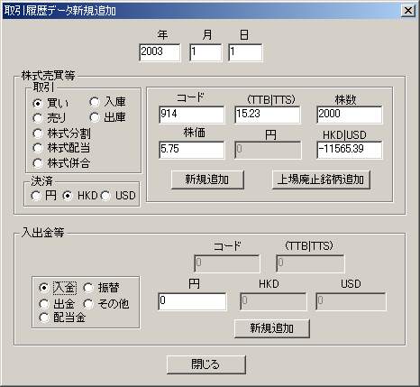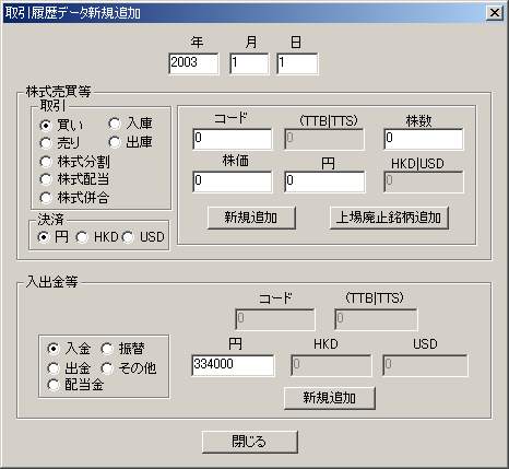 また、日付の入力は、株式売買時と入出金時の両方で必要となります。