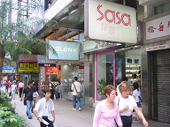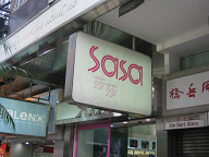 道路の名前をチェックしたら、ここはネーザンロードのようですね。 ![]() だいたいの場所がわかったので、ホテルへと移動します。 ![]() おお、なんと、SASAがありましたよ。 これが、噂に聞くSASAか!、なんて思いながら、 写真を撮りました(笑)。 ![]() 入り口はこんな感じです。 SASAは、香港の化粧品専門のディスカウントストアですかね。