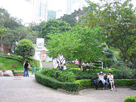近くには、香港公園があるようなので、 そこを見てみることにしました。 ![]() 公園の上側にはたくさんの高層ビルが並んでいますね。 さらにその後ろは、小高い山となっています。 この山がビクトリアピークのようですね。 この後、香港の百万ドルの夜景を、このビクトリアピークから 眺めてみることにします。 ムービーはこちらからどうぞ。 ![]() ちなみに、香港の金持ちは、みんな山の上に住んでいるらしいです。 香港は湿度が高いので、山の上の方が過ごしやすいようですね。 ![]() 公園内に入りました。 たくさんの人が公園にいますね。 観光客も多いです。 あと、さすがにちょっと暑いですね。 だいぶ歩きましたしね。 ![]() 公園内を散策することにします。 ![]() オフィス街の中にこういった公園があるとは、 なかなか良い環境ですね。 ![]() 池もありました。 ![]() ここは、意外と広いですね。 ![]() おや、五輪のマークが見えてきましたよ。 オリンピックを記念して建てられた場所でしょうか。 このあと、この公園を後にして、ピークトラムという 乗り物に乗って、ビクトリアピークへと移動することに しました。 トラムの乗り場はどこかなぁ? ![]() ちょっと歩いたところ、トラムの乗り場所がありました。 なんだ、結構近いじゃん!、と思ってしまいましたね。 見てみたら、結構な行列ができていましたね。 いやぁ、ここに並ぶのかぁ、といった感じでしたね。 もうちょい後でいくつもりでしたが、良かったです、 早めに行って。