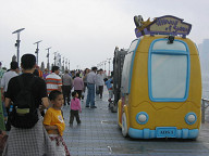 おお、ついに到着したようです。 「Fascinating Shows at the Avenue of Stars」 と書いてありますね。 スター通りですかね。 プロムナード(散歩道)の中の一部に、 このスター通りがあるって感じでしょうか。 ![]() この通りのテーマである映画を象徴する像がありました。 ![]() こんな風に、香港の映画についての解説パネルが たくさん置いてありました。 ![]() キオスクがありました。 ![]() キオスクはこんな感じです。 でも、ぱっと見、店員などはいなくて、 やってなさそうに思えましたが…。