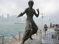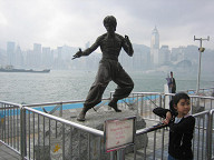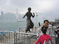 おや、これは、ジェットリーではないですか。 ![]() ちょっとアップで。 ![]() さらに歩いていたら、おお!、ありましたよ。 ブルースリーの銅像が! 近くでみたのですが、デカイ!! 写真からはちょっとわかりませんが、実物より かなりでっかく作ってあると思われます。 ![]() アップで! ![]() もうちょい正面から。 ![]() ちょいカメラを引きました。 後ろには香港島も映っていて、 なかなか良い感じですね。 ![]() さらに、カメラを引いてみました。 たくさんの人たちが、ここで記念写真を撮っていましたね。 ![]() こんな感じでね。 ![]() 周りは、こんな感じです。 ![]() おや、チャウシンチーの名前を発見。 「周星馳」ですね。 しかし、これまた、残念ながら手形がありません…。 ![]() 途中には、このように映画撮影の様子を表した 銅像がいくつかありましたね。 ![]() ここからさらに東の方はこんな感じです。 ![]() スター通りが終わりました。 その先には、このように釣りをしている人がいましたね。 ![]() シャングリラホテルがありました。 シャングリラは、上海にもありますね。 浦東の東方明珠の近くにあります。 さて、ここから戻って、スターフェリーに乗って、 香港島へ移動することにします。 ![]() 来た道をそのまま戻るのではなくて、 道路の方を歩いて戻ることにしました。 「New world Centre」という文字が見えてきました。 これは、口座開設本にも書いてあったと思いますね。