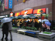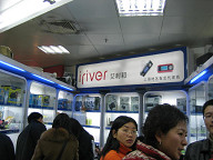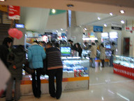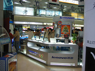 今日は、電脳城と太平洋百貨を訪れました。 ![]() 電脳城へ向けて歩いていたのですが、途中にあるピザハットに よって食事をしようと思って、ピザハットを見たら、結構人が並んでいました。 雨が降っていて寒し、この列に並んで食べるほどでもないだろうと思い、 今回は諦めることにしました。 いずれ行ってみたいですね。 というか、こんなに人気あるの?、ピザハットって。 個人的には、大食代での食事の方がいいのだけど、まぁ、それは 自分が地元の人間ではないからか。 ピザの方が珍しさ度が高いのだろうね、きっと。 ![]() あと、こちらは、ハーゲンダッツのお店も多いですよね。 ハーゲンダッツの小さいカップのお値段が、30元ぐらいしたんじゃないかなぁ。 普通の食事が10〜20元ぐらいでできることを、かなり高いですよね。 まぁ、位置づけが全然違うのでしょうね。 そういうもんだという位置づけにもなっていそうな気がしますしね。 日本では水がタダ(最近は違うかもしれんけど)なのが当たり前というような、 そういう具合ではないでしょうかねぇ。 ![]() どんどん歩いていきました。 だいぶ近づいてきたところで、MP3プレイヤが展示してあるのが見えてきました。 ![]() お、iPodミニもありますね。 ![]() 電脳城らしき所にはいりました。 #でも、後で思ったのですが、ここは別の場所 #だったような気がします。 アイリバーの製品がありました。 私のMP3プレイヤも、アイリバーなんですよね。 iFP-799ですね。 こちらでは、いくらぐらいするのかチェックしてみようと 思って見てみたのですが、なんか、128Mと256Mの 製品しか展示してないですね。 1Gは、高くて売れないから、置いてないってことでしょうか。 他のお店をみても、どこも、128Mと256Mでしたね。 ものの見事に1Gのやつは見かけませんでした。 #聞いてみたらあることにはあるようでしたが。 #展示してないで在庫として奥にあるのかな。 日本では、128Mや256Mは、もう消えてなくなろうかとする ぐらいの製品だと思うのですが…。 やはり、日本とこちらとで、状況が違うようです。 微妙な所での違いがあるもんですね。 ![]() お店の様子は、こんな感じです。 結構綺麗な所ですね。 ![]() どうもここは、電脳城ではないようなので、 一旦外に出ることにしました。 レノボのロゴが見えますね。
