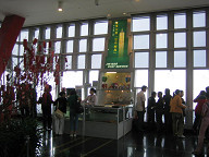 今日は、国慶節の初日です。 今日は ・金茂ビル ・水族館 ・外灘の観光船 のこの3つに行ってみることにしました。 まずは、金茂ビルです。 ここは、アジアで最も高くて世界では第三位の高さを誇るビルです。 高さは450メートルです。 ![]() 金茂ビルに到着です。 金茂ビルは、浦東にあります。 東方明珠TV塔のすぐ近くです。 私は、地下鉄に乗って30分ちょいで、最寄の駅に到着しました。 そこから歩いて5分ほどでしょうか、金茂ビルに到着しました。 今日は、国慶節の初日ですから、結構人が多いことが予想されます。 時間は午前11:30過ぎです。 今日の天気は曇りで、後ほど少し雨が降ってきましたね。 外は少し肌寒かったです。 国慶節を祝う赤い風船があちこちに見られましたね。 ![]() これは、ビルの下の方です。 早速入り口から入ります。 ![]() 地下一階に降りました。 ここで、切符を買うようです。 大人1人50元でした。 ![]() 切符を係りの人が改札に通して、エレベータを待つエリアへと入ります。 さすがに東方明珠より人はだいぶ少なさそうですね。 国慶節だからもっと多いと思っていましたが。 ![]() エレベータにのって、あっという間に最上階の88階に到着しました。 ほんとに、あっという間でしたね。 1,2分ぐらいでしょうか。 東方明珠は、最上階までいくのに待ち時間がかなり長いのですが、 こちらはあっという間なので、なにげに良いかもしれません。 ![]() 外を見ます。 あいやー、曇っているので近くしか見えませんねぇ。 ![]() 部屋の中を見回すと、願い事を掲げる木がありました。 家庭の幸せなどのお願いがしてありましたね。 ![]() 東方明珠と正大広場を見たところです。 奥は外灘ですね。 ![]() 再び中を見回すと、空中郵便局といって、 郵便局がありました。 絵葉書や北京オリンピック記念切手などが売ってありましたよ。 ![]() おや、これは、トムソンの億ションではないですか? さすがのトムソンの億ションも、小さく見えますね。 ![]() 部屋の中央まで行ってみると…。 なんと、下のフロアが見えるではないですか? このフロアは55階だったかな? 見ていると吸い込まれそうです…。 足の感覚がヘンになってきましたよ。 ちょっと恐いので、この辺にしておきます。 ![]() 再び外を見ていると、建築中の高層ビルが見えました。 デカイクレーンが見えますね。 ここら付近は、いたるところで工事が行われていましたね。 もっとたくさんの建物やビルができるようですね。 ![]() 金茂ビルの外観は、こんな感じです。 アメリカや日本、ホンコン、上海の会社が このビルのデザインを行って、最終的に アメリカのデザインに決まったようです。 また、ここの土地は柔らかいので、地面をかなり深くほって 基礎工事をやったと書いてありました。 比較的台風も多いので、台風や地震にもきちんと対処できる 強度が設計されている、とも書いてありましたね。 マグニチュード7の地震がきても、大丈夫みたいでしたよ。 ![]() さらに歩いていると、おじさんの写真がありました。 ![]() このおじさんは、絵描きさんのようで、上海の昔の人々の 様子を書いたりしているようですね。 このカベ一体に昔の上海の人々の生活を描いた絵が、 ずらっと書いてありましたよ。 ![]() 高層ビルの近くには、だいぶ昔に立てたマンション郡が見えます。 #写真中央から奥にかけてがそうです おそらく、こういった古めかしいマンション群も、そのうち再開発される のではないでしょうか。 高層ビルと古めかしいマンションが対象的ですね。 今の上海を象徴している図ではないでしょうか。