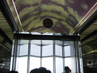 黄浦江には、いつも通りたくさんの船が往来していました。 ![]() 一通り見回ったので、エレベーターで降ります。 ![]() エレベータに乗り込みました。 奥には、このようにビルの絵と、エレベータの位地を表す 赤いマークがありました。 ![]() エレベータの入り口の様子です。