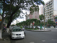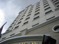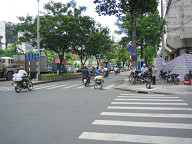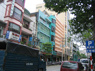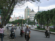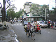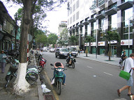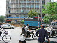 目下には、3人ほど人がいました。 何かやっていましたね。 バイクをいじっていたように見えましたが。 ![]() 朝食は10時までなので、あと1時間もありません。 急いで準備して、GF(Ground Floor)へと向かいました。 レストランの入り口では、係りの人が英語で何か喋ってきました。 よく分からなかったのですが、昨夜ガイドさんから 部屋の番号を係りの人に告げてくださいと教わっていたので、 部屋の番号を言ったところ、係りの人がそれをメモして、 その後、無事中へと案内されました。 しかし、英語がいたるところで出てきますね。 グローバルな世の中ですから、基本的な英語ぐらい できないとダメっすねぇ。 1回、英会話の勉強をしに行きたいです。 案内してくれた人が、コーヒーか紅茶か聞いてきたので、 紅茶にしておきました。 ビッフェ方式なので、私は、パンや野菜、ビーフンをお皿にとって 食べたりしましたね。 ![]() あと、ワッフルも頼んでみました。 普通のワッフルでしたね。 ベトナムでは、路上でワッフルを焼いているおばちゃんがいました。 ![]() これは、どうやら、フォーのようです。 スープの中に、米の麺や豚肉や野菜が入っていました。 香辛料は、自分の好みで追加できるようです。 胡椒や唐辛子入りのタレなどがあったと思います。 ベトナムでは、フォーを朝ご飯として食べるようですね。 ![]() ということで、フォーも食べてみることにしました。 朝からちょっと食べすぎかも(笑)。 ![]() 周りの様子をちらっと…。 お客さんは、欧米人が多かったです。 あと、日本人も何人か見かけました。 日本人は、若い女性が多かった気がします。 しかも、2人組みが多かった気がします。 あとは、団体旅行の日本人のおっちゃんとかもいましたね。 アジアからの旅行者は、日本人が一番多いそうです。 その次は、中国人だそうです。 ![]() 食事を終えて、ロビーへと出ます。 ロビーの様子をチラッと…。 ![]() エレベータで、自分の部屋へと戻ります。 ベトナムはイギリス式なのか、GFと1Fが別なので、 最初は間違えましたね。 ![]() そして、準備を整えてホテルの外へと出ました。 これはホテルの前の道路の様子です。 車が通る道とバイクが通る道がきちんと区分けされてました。 バイクの量が半端じゃないので、こうやって分けておかないと いけないのでしょうね。 ホテルから右手をみたところですが、この先には サイゴン川があるはずです。 ![]() 左手を見たところです。 こちらの方は西になると思います。 繁華街はこちらですね。 ![]() 振り返って、ホテルを眺めて見ます。 ダクストンホテルです。 ![]() さらに上の方を見たところ。 ![]() 入り口です。 今日は、まず徒歩でサイゴン証券へと移動することにします。 本当は、明日訪れる予定だったのですが、昨夜の上海ねこさんや ハノイ太郎さんの話によると、「混む可能性があるから口座開設は 早めの方がいいでしょう」とのことでしたので、今日の午前中に 一度訪問して、今日の午後にでも口座開設ができるかどうかを 聞いてみたいと思います。 ![]() すぐ隣には、フォー屋さんがありました。 これは、「地球の歩き方」にものっている、フォー24というお店ですね。 チェーン店です。 ”綺麗な店内で、女性1人でも安心して入れるお店”、だそうです。 後日、行ってみましたが確かに良かったですね。 ![]() 路上には、果物を売っているおばちゃんがいました。 ホテルを出てすぐに、バイクタクシーのおっちゃんがいて、 しつこく声をかけてきましたね。 「どこ行くの?」とか、「マッサージはどうか?」とか しつこく誘ってきましたね。 初日で現地の事情がよく分かりませんし、歩いての移動なので、 ジェスチャーで、いらないよ!、と示しつつ、なるべく関わらない ようにすることにしました。 ![]() これはカメラ屋さんですね。 デジカメではなくて、フィルムカメラです。 店の前では、数人が雑談していました。