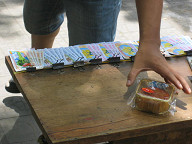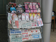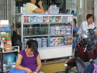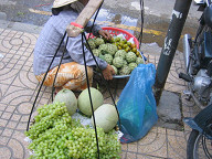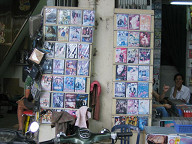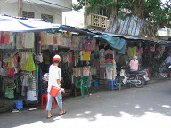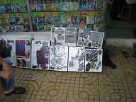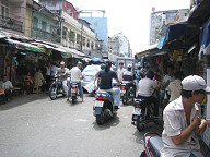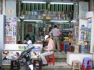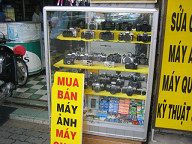 ジュースが売ってあります。 ![]() ワンちゃんがいましたよ。 ![]() 薬屋さんです。 ![]() 銀行のATMがありました。 HABUBANKという銀行のようです。 ![]() 時計屋さんです。 SEIKOやCITIZENの文字が見えますね。 ![]() サングラスですね。 招き猫が置いてあります。 ![]() 目の前の道路です。 結構大きな通りで、車もたくさん通っていました。 グエンフエ通りのようです。 ![]() バイクもたくさん走っています。 ![]() これは、コム・ガーのお店です。 コム・ガーは、ご飯と鶏肉がメインの 中華風のベトナム料理のようです。 ![]() 服屋さんです。 ![]() これは、コピー屋さんのようです。 人が結構多かったですね。 そういや、こちらにはコンビニがないので、こういったコピー屋さんが 独立して存在するのですかね。 この後、大事なことに気がつきました。 デジカメの電池のスペアを持ってきてない、ということに。 急いでホテルへと取りに戻りました。 ![]() ホテルの部屋に戻り、電池を鞄に入れ再度出発です。 これは、エレベータを待っている間に窓から外を眺めてみたところです。 写真中央のビルは工事中のビルです。 このように工事を行っているビルも一応あるようですね。 左手には、サイゴン川が少し映っています。 ![]() さらに左を見たところです。 サイゴン川にも、後日行ってみたいです。 ![]() 女性用の衣料品店です。 ![]() カメラですね。 こちらでは、デジカメはマイナーなのですかね。 フィルムカメラの方がメジャーみたいです。 ![]() カバンや財布です。 ![]() 写真の現像屋さんですね。 ベトナムでは、結構頻繁に見かけましたよ。 ![]() 歩道の様子です。 ![]() こういった高めのビルもあるにはありますが、 低めのビルが多かったです。 高層ビルといったものは、あまり見かけられなかったですね。 ![]() どんどん歩いていきます。 ![]() 歩いていたら、近代的なビルに、SANYOの看板が掲げてありました。 このビルは、中華系の資本で建てられたビルのようでしたよ。 漢字で、ビルの名前が書いてあったと思います。 ![]() 左へと曲がります。 ホテルから南西の方に、サイゴン証券があるはずです。 地図を見ると、すぐ近くに市場があるようなので、 そこを通っていくことにします。 ![]() DVD屋さんのようです。 アメリカの映画だけでなく、中華系(香港、台湾?)の 映画も多かったように見受けられました。 ![]() おじさんがDVDを選んでいるようでしたよ。 ![]() ここはメディア屋さんでしょうか。 右手には、CDやDVDと思われるメディアが積んでありますね。 ![]() 映画のポスター。 どこの映画でしょうかねぇ。 ![]() 現地の歌手と思われるパッケージもたくさん置いてありました。 ![]() さらに歩いていきます。 ![]() 電器屋さんですね。 TVが並んでいるのが見えます。 中に入ってみましたが、SONYやサムソン、フィリップスのTVなどが 置いてあったと思います。 お値段は、3,4万円のが主流だったかな。 ![]() これは、冷蔵庫ですね。 これらも、3,4万円ぐらいの価格帯だったと思います。 こちらの平均月収は、月3万円らしいですので、3、4万円は かなりのお値段ですよね。 ![]() おや、PSPやニンテンドウDSもありますね。 後日、デパート(国営百貨店)で、ニンテンドウDSの値段を 聞いてみたら、1万5千円ほどしました。 日本とあまり変わらないですよね。 あと、値段が表示してないのが困りモノですよね。 いちいち聞かないといけないですし、交渉もしないといけないと思います。 ![]() ホンダのバイクですね。 ホンダのバイクがたくさん走っているという情報は本当のようです。 ホンダ以外にも、日本のメーカーでは、スズキやヤマハがありました。 日本以外のメーカーもあったようです。 ![]() カメラを引いてみたところです。 バイクの値段はいくらでしょうね? 聞いておけば良かったです。 ![]() 道を歩いていると、このように果物などを売っている人が たくさんいました。 ![]() これは、ファミコンですね。 PSやメガドライブの形をしたファミコンだと思います。 ![]() ブドウですか。 ![]() これらは、カセットテープです。 主に現地の歌手のテープでしょうか。 ![]() ブドウの奥のはメロンかなぁ。 いろんな果物がありますよね。 ![]() 服屋さんです。 こういった明るい色が多いですね。 ![]() 市場に出ました。 ここは、チョ・クー市場という市場のようです。 ![]() たくさんのお店が並んでいます。 ここは昔ながらの市場のようで、現在は次第に縮小して いっているとガイド本に書いてあったと思います。 ![]() 市場の反対には、Panasonicのお店がありましたよ。 ![]() 少しカメラを引いてみました。 ![]() 市場を歩いてみることにします。 ジーンズ屋さんがありました。 ![]() まずは、衣料品店が立ち並んでいるようです。 ![]() お菓子類が置いてありますね。