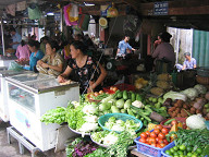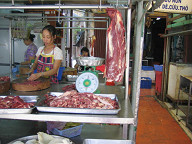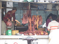 お米です。 ![]() 全部ベトナムのお米でしょうか。 日本のお米とは形が違いました。 ![]() 2台の車のせいで、道がつっかえてます。 ![]() 肉屋さんです。 ![]() ここも肉屋さんですね。 ![]() 食用油です。 ![]() カップ麺です。 ![]() 出前一丁もありました。 これまた、どこにでもありますねぇ。 ![]() MILOやNESCAFEです。 ![]() チョコレート菓子です。 FuneBitesと書いてありました。 さすがにどこのメーカーかは分かりませんね。 日本や上海で見かけないから、現地メーカーかな? ![]() お肉のコーナーを見たところです。 ![]() 野菜屋さんです。 ![]() 市場の周りのビルを見回してみました。 ![]() 2〜5階ぐらいの建物が多いでしょうか。 ![]() 汚なめのビルが多かったですね。 ![]() 野菜です。 ![]() ここら辺は野菜屋さんが続いていましたね。 ![]() 引き続き野菜屋さんです。 ![]() 野菜を買っている人がいました。 ![]() アルコール類です。 ![]() これは、牛の胃袋かな? 属に言うハチノスですかね。 ![]() ということで、再びお肉屋さんです。 ![]() ちょっとグロテスクですねぇ。 ![]() 果物屋さんです。 ドラゴンフルーツ、ざぼん、みかん、ブドウなどがありました。 ![]() バナナやスイカもありますね。 ![]() またまたお肉屋さんです。 ![]() 衛生面は大丈夫なのだろうか。 ベトナムは、牛肉はどうしているのでしょうね。 国内産が多いのかなぁ。 どうでしょうね。 後日、メコン川ツアーに行ったときには、 途中で牛を結構見かけましたが。 ![]() 花屋さんです。 ホーチミンは、南の方にあるので、季節は2季しかないようです。 5月〜11月が雨季になるようです。 今日は10月3日ですので、まだ雨季でした。 なので、滞在中の3日間とも、雨には降られましたね。 強烈な雨は、初日の夕方のだけでしたが、傘は必須かもしれません。 南にあるせいか、農産物には恵まれているようです。 どことなく豊かな感じがします。 ![]() コカコーラよりペプシがメジャーそうです。 ビールは、ハイネケンがメジャーそうでした。 水はエビアンがありましたね。 水やビールは、ローカルなメーカーの製品もたくさんありました。 ![]() ようやく市場が終わりました。 ここからサイゴン証券へ向けて移動します。 ![]() ここの道路は結構大きいですね。 交通量も多いです。 どうやら、ここはノムギー通りのようです。 ![]() 歩いて移動します。 ![]() 道端には、なぜか綺麗に4人並んで座っている おばちゃん達がいました。 ![]() おや、ベトナムコーヒー発見! ![]() ちょっとアップで。 ![]() こちらは、紅茶やウーロン茶、ジャスミンティーなどですね。 ![]() 道端には、宝籤みたいなのを売っている人がいました。 丁度、知り合いと思われる人が月餅を置いていってましたね。 ![]() 洗剤です。 ![]() 日用品店ですね。 ![]() お風呂用洗剤です。 ![]() ヘチマも売ってありましたよ。 ![]() 人形がたくさん置いてあります。 玩具店ですかね。 ![]() 薬屋さんです。 ![]() 床屋さんですね。 ![]() パンが売ってあります。 ![]() 時間は、今は午前11時頃です。 もうお昼の時間なのでしょうか。 道端では、食事をしている光景が見られます。 ちなみに、サイゴン証券のお昼休みはAM11:30〜PM1:30までの 2時間のようでしたよ。 ちょっと長いですよね。 学校は、午前組と午後組があって、午前組はAM7:30〜AM11:30まで、 午後組は、PM12:00〜PM4:00までだと、ガイドさんから教えてもらいました。 授業時間は賞味1日4時間ですかね。 ちょっと少なくないですかね。 ほんとかな? しかも、これは小学校の話なのですかね? 中学や高校はどうなっているのでしょうか。 もっと詳細を聞いておいても良かったですね〜。