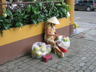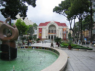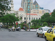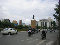 今日は、ホーチミン市内のデパートや観光名所を巡りたいと思います。 ![]() ホテルの部屋の窓から朝の様子を眺めてみました。 やっぱり、まださほど発展してない気がしますね。 ![]() アメニティです。 シャンプー、リンスはあるのですが、 ハブラシやハミガキ粉がないのですよね。 これには、ちょっと困りました。 ![]() その代わりにか、このような綿や糸が置いてありました…。 こんなの置いてあってもなぁ。 ![]() 朝食です。 パンが美味しいです。 豆も美味しかったです。 ![]() 今朝もフォーを食べます。 ベトナム人は朝ご飯でフォーを食べるらしいですからね。 ![]() 朝食もとったことだし、早速外出することにします。 ホテルを後にします。 ![]() ますは、近くにある本屋さんを覗いてみることにしました。 入り口に入ってすぐには、TOEICやTOEFLなどの英語学習に 関する本がたくさん置いてありましたね。 ベトナムでは英語学習は盛んなのでしょうかね。 PCの技術書を見ましたが、結構な値段がしました。 日本円で2、3千円ぐらいはしたかもしれません。 所得を考えると、技術書はかなり高い買い物ではなかろうか。 ![]() この書店は、4階まであったと思います。 2、3階あたりには、文房具やオモチャもありましたね。 4階はこのような子供の学習所といったところでしょうか。 3階までを見る限り、日本の書店の構成とだいぶ似ている感じでしたよ。 本屋と文房具やが一緒になっているところとかがね。 ![]() 一通り見終わったので、そとに出ました。 そしたら、ワッフルを焼いているおばちゃんがいました。 ![]() とりあえず、東へ歩いて行きます。 サイゴン川を見てみることにします。 途中、工事中の個所がありました。 他にも、ちらほらと工事中の個所がありましたね。 でも、上海ほどには再開発は頻繁ではなさそうですが。 ![]() 移動中です。 これは、お土産屋さんかな。 ![]() 道端には、果物を売る人たちがたくさんいましたね。 ![]() 日立のショベルカーです。 ![]() おや、水が置いてありますね。 このボトルは、中国と一緒ですね。 ![]() ホテルかな。 ![]() ダクストンホテルから東へと移動します。 ![]() フィルム写真の現像屋さんです。 多いですね。 ![]() おや、Panasonicの広告が見えました。 ![]() 大きな道路に出くわしました。 ここを渡るとサイゴン川になるようですね。 渡ろうとしていたら、たくさんのバイクタクシーや シクロが声をかけてきました。 ![]() 交通量が多いのでなかなか渡れなかったのですが、 ようやく渡ることができました。 渡った先は、ちょっとした公園みたいになっていましたね。 サイゴン川沿いの公園といった感じでしょうか。 ![]() サイゴン川です。 茶色ですね。 ![]() サイゴン川はこんな感じです。 ![]() 向かい側には、SANYOの看板がありました。 ![]() 北へ少し歩いていきたいと思います。 緑が多いですね。 ![]() 移動しようとしたら雨が降ってきました。 傘を持っていないので、ここでしばらく動けなくなってしまいましたね。 早く傘を手に入れなければ。 ![]() 今いる所はお店です。 後ろを振り返ってみたら、ペプシの広告がありました。 立っていたら、2,3人ぐらいの売り子が現れましたね。 サンダルやお土産品などを売ってました。 また、バイクタクシーも何人かが声をかけてきましたね。 スキあらば声をかけてくるようです。 ![]() サイゴン川には、貨物船が往来していました。 ![]() お店の少年が網を手に持って川を見ていますね。 魚が取れるのかな? ![]() 雨脚が弱くなったので、移動することにしました。 マジェスティックホテルがあります。 最初、ここも検討していたのですが、部屋がなかったので、 ダクストンホテルになりましたね。 ![]() マジェスティックホテルです。 ![]() 少し北へ歩いた所に、川の向こう岸に渡るフェリー乗り場がありました。 たくさんのバイクがここから入っていってました。 ![]() これが、フェリーのようです。 ![]() さらに少し北に歩きました。 これは、ルネッサンス・リバーサイドホテルです。 ![]() メリン広場が見えます。 ![]() ここには、チャン・フン・ダオ像というのがあります。 ![]() 天気がかなり怪しいです。 まだ、ホーチミンは雨季ですからね。 5〜11月が雨季だそうです。 ![]() 道路をようやく渡りました。 右側のビルは、メリン・ポイントタワーかな。 ![]() 自動販売機がありました。