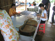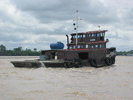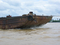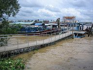 ![]() 駐車場にはたくさんの観光バスが停まっています。 ![]() トイレ休憩です。 ![]() そして、いよいよ船へと乗り込みます。 楽しみですね! ![]() メコン川はこんな色です。 茶色ですね。 ![]() 船に乗り込みました。 船内からメコン川を見たところです。 さすがに広いですね。 ムービーはこちらからどうぞ。 ![]() 船で移動中です。 ![]() 船が往来していました。 ![]() 右手を見てみます。 ![]() 水面を見てみました。 ![]() 船が停泊しています。 ![]() 漁船でしょうか。 ![]() 川の中央に島がありました。 ![]() さらに対岸へ向けて進みます。 ![]() 船内の様子です。 ![]() こういった船が数隻、ロープで大きい船を 牽引していました。 ![]() 牽引しているのはこれです。 ![]() うわ、結構デカイ。 ![]() つーか、近いんじゃ? 大丈夫なのか? ![]() 遠ざかっていきました。 ![]() この船は、砂を運んでいるそうです。 ![]() 再び船が移動し始めます。 ![]() 右手奥の方を見たところです。 より川下の方ですね。 ![]() 小屋がありました。 魚を養殖しているようです。 ![]() そして、目的地へと到着したようです。 ココナッツキャンディー工場があるそうです。 ![]() 船をつけて上陸します。 ![]() 上陸しました。 いきなり、ココナッツキャンディーを作っている 場面に出くわしました。 写真は、ココナッツの汁ですかね。 ![]() この器械で、汁を取り出すようです。 工場と書いてありましたが、めちゃめちゃ家内制手工業ですね。 ![]() 作りたてのココナッツキャンディーです。 作りたてのせいか、なかなか美味しいです。 ![]() キャンディー制作現場のようです。 ![]() 作ったばかりのキャンディー。 ![]() キャンディーを制作中です。 ![]() これは、お土産用のキャンディーです。 1つ2USDぐらいだったかな? ![]() 歩いて移動です。 ![]() 途中、お土産屋さんがありました。 市内でもよく見かけるものばかりです。 ![]() 木工製品です。 嵩張るし、さすがにここでは買わないでしょう…。 ![]() そして、休憩所へと着きました。 ![]() ハチミツ園が近くにあるようで、ここでは ハチミツ製品などをいくつか試食しました。 これは、ハチミツとハーブで作った飲み物だったかな。 柑橘類も少々入れてましたね。 悪くはなかったです。 ![]() バナナや蓮の実、タロイモなどのお菓子。 これは、街中のスーパーでも売ってありますよね。 バナナが一番美味しかったです。 ![]() ローヤルゼリーです。