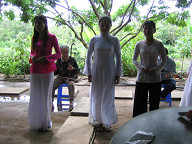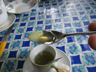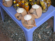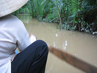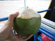 これは何だっけか? お酒かな? ![]() ハチミツやお菓子です。 お土産として買えるようです。 ![]() タロイモチップス。 ![]() ちなみに、周りはすごいハチが多くて、 このようにスキあらば、我々の食べものを 頂こうと飛びまくっていました。 気がついたら、1匹のハチがローヤル ゼリーを一生懸命食べてました。 ![]() そして、再び移動します。 お土産屋さんがありますね。 買う人があまりいないせいか、店員は声はとりあえず かけるけど…、といった感じでした。 ![]() おや、ニワトリ発見! ![]() これは、ちょっと面白いですね。 ココナッツの実で作ったおサルさんですね。 ![]() ミッキーマウスのお土産があります。 街中でもよく見かけます。 ![]() さらに移動します。 民家っぽいのがありましたよ。 ![]() 移動中です。 ![]() パイナップルが木にぶら下げてありました。 ![]() パパイヤもありました。 ![]() 休憩所があります。 ![]() どうやら、ここでフルーツを食べれるようですね。 バナナやパイナップル、龍眼。 ![]() ドラゴンフルーツ。 ![]() パイナップルを食べてみました。 うむ、美味しいです。 ![]() ドラゴンフルーツです。 ![]() パパイヤです。 これは、ちょっとイマイチだったかも。 ![]() 龍眼です。 味は普通かなぁ。 ![]() 果物を食べてたら、なにやらおじいちゃんや ちっちゃい子が現れました。 なんだ? ツアーメニューの中に、民族楽器演奏という項目がありましたが、 どうやらこれがそれのようですね! 意外な展開にちょっと驚きました(笑)。 #思いっきりネタバレですね…。 ![]() そして、おじいちゃん達の演奏に合わせて、 ちっちゃい子が唄いはじめましたよ! ![]() その次は、女性人のようです。 ハモッていました。 ムービーはこちらからどうぞ。 そして、いくつかの演奏が終わり、 最初の小さい子が、近寄ってきたと おもったら、どうやらみんなからチップを もらうようですね。 そういう段取りなのか…。 ということで、私も少しあげました。 ![]() 気がついたら、フルーツはハチの群で一杯です。 パイナップルなどは、もう食べれないですねぇ。 ![]() ショーも終わりしばらく休憩です。 ワンチャンがいましたよ。 ![]() 欧米人もいました。 ![]() 付近を見ていたら木の苗が植えてありました。 ![]() 育ったらこのようになるのでしょうね。 ![]() ガイドさんと共に再び移動します。 ![]() ざぼんです。 ![]() バナナです。 ![]() パパイヤです。 ![]() どうやら今から手漕ぎボートに乗るようですね。 ![]() ボートに乗り込みました。 二手に分かれるようです。 ![]() 我々の船の運転手です。 ![]() 出発します! なかなか、いいんじゃないっすか! ムービーはこちらからどうぞ。 ![]() 水面です。 ![]() おばちゃんが漕いでますね。 後ろにも漕ぎ手がいました。 ![]() 周りを見渡してみます。 ![]() どんどん進みます。 ![]() 民家を発見! ![]() 民家です。 ボートが着けてあります。 ![]() おや、対向船が現れました! ![]() 我々のもう1つの船が追い越していきました。 なぜかガイドさんも漕いでいます。 ![]() 対抗船には欧米人が多かったように思えましたよ。 ハロー!、とか言ってましたね。 ムービーはこちらからどうぞ。 ![]() また現れました。 結構いますね。 ![]() おや、メコン川が見えてきました。 メコン川にこのまま出るのですかね。 ![]() どうやらこのまま乗って来た船に戻るみたいです。 ![]() 船へ向けて移動します。 ![]() 我々が乗ってきた船が見えてきました。 ![]() たどり着きました。 船へと戻ります。 ![]() おばちゃん達はボートを漕いで帰っていきました。 ![]() 戦場に乗り込みます。 雨がポツポツと降ってきました。 ![]() 船で戻ります。 メコン川クルーズももうすぐ終わりですね。 ![]() 戻る途中、ココナッツジュースをもらいました。 飲んでみましたが、結構美味しい、と思ったのですが、 なんか舌が少しヒリヒリします…。 なので、全部は飲みませんでした。 ![]() また、砂を運ぶ船が見えました。 ![]() そして、しばらくして元の船着場へと戻ってきました。 ![]() 水面の様子。 ![]() 到着です。 いやぁ、なかなかおもろかった! ![]() 駐車場へと戻ります。 ![]() 車の乗って、ホーチミンへと戻ります。 ここから、約1時間半ぐらいかかるようです。 到着は午後4時頃でしょうか。 どうやら各自のホテルまで送ってくれるようですね。 ![]() 移動中です。 ベトナム旅行も今日で終わりです。 ホテルから午後10:30には空港へ向けて出発する予定です。 でも、午後:00にホテルについてから午後10:30まで しばらく時間があります。 まだ、少しどこかを観光できそうです。 ![]() 移動中です。 おや、コンビニらしき看板を発見。 ![]() しばらく移動していたら、途中、料金所みたいな 所に入っていきました。 ![]() 高速道路か?、と思ったのですが、 どうも違ったようです。 ![]() ここはどうやら、台湾、香港、ベトナムが出資して 開発している開発区のようです。 道路は有料道路だったのですかね。 ![]() おや、これは、開発区内のマンショ
