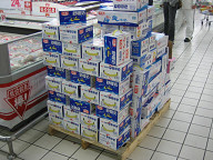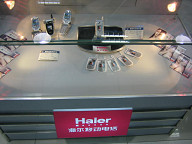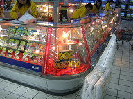 ![]() 今日は、まず近くの繁華街であるガンホイに行ってきました。 今日は元旦になるのですが、見た感じではいつも通り普通に お店が開いている感じでしたね。 この後行ったカルフールも夜の10時まで営業していましたしね。 ![]() 今日は、上の階(4,5階?)に行ってみました。 おもちゃ売り場があったのですが、そこで、BANDAIの コーナーがありましたね。 ガンダムなどが売ってありました。 今やっているガンダムでしたね。おそらく。 ![]() あと、ウルトラマンもありましたね。 ウルトラマン・ティガでしたっけ。 トミーもありますね。 ![]() クレヨンしんちゃんもありました。 ![]() 食堂街を見て回りました。 ここは、日本式焼肉のお店ですね。 結構人が入っていたように思えます。 ![]() ここは回転寿司のようです。 ここは、結構込んでいましたね。 ![]() チャイナドレスなど、中国ならではの服を売っているお店でした。 ![]() これは、置物ですね。 不死鳥みたいなオブジェがありました。 ![]() このガンホイ広場ができてから、5周年だそうです。 それで、くじ引きがあっていたようですね。 ![]() 1位は、SONYのサイバーショットがあたるのかな? ![]() ここは、楽器屋さんでした。 電子楽器や、ピアノ、ギター、中国の楽器などがありました。 ![]() こんな感じですね。 ![]() さらに上の階へと上りました。 この階は、電気製品が置いてある階でした。 サムソン電子のブースが最初に眼に入りましたね。 ![]() これは、SHARPですね。 ![]() これは、SONYです。 他に松下などもあって、日本のメーカーは一通りあったかと思います。 ![]() これは、ソニーのVEGAかな? ソニーのブースが一番大きかったですね。 ![]() ソニーのデジカメなどの製品群です。 ![]() デジカメのブースにきました。 私がもっているキャノンのデジカメがありました。 IXY DEGITAL40で、こちらでの値段は、2700元でした。 日本のお値段は、34000円ぐらいだったと思います。 それを単純に13.5で割って元換算にすると、2519元ですか。 あれ、あんまり変わらないなぁ。 10%のポイント還元があるとして、31000円だとすると、 2297元ですか。 5千円ぐらい違うのかなぁ。 ![]() デジカメはあとは、オリンパスとかNECとか富士フィルムとかが ありました。 やはり、デジカメは日本勢が強そうですね。 オムロンのところには、体脂肪計などが置いてありました。 私が買ったやつと思われるものもありました。 850元ぐらいだったかなぁ。 +10%ほど高かったような感じでした。 ![]() ここは、携帯売り場です。 これは、ノキアですね。 奥にはモトローラがありました。 ソニーエリクソンもありましたね。 ![]() あとは、レノボもありました。 ![]() これは、ソニーエリクソンですね。 奥にハイアール(かな?)がありますね。 ![]() Haierですね。 ![]() これは、TCL通訊ですね。 だいぶ株価は下がりましたよねぇ。 ![]() TCL通訊です。 ![]() ノキアの看板ですね。 やはり、ノキア、モトローラ、ソニエリが強そうに見えました。 その他に、NEC、レノボ、Haierなどなど、他のがあるって感じなのかな。 サムソンもあったかな。 ![]() 下の階に下りました。 これは、ネスレの製品ですね。 ネスレはよく見かけますね。 キットカットなどもよく見かけます。 ![]() 1階に戻りました。 再びジョルダーノ。 ジョルダーノは、良い場所にお店がありますね。 頑張ってそういうところに出しているのか、それとも、 そいう所に出しても問題ないぐらいの収益なのか どうなのかがちと気になる所です。 1階と地下1階の2箇所にありますしね。 ![]() これは、資生堂です。 1階は、化粧品のお店がたくさんありますね。 ![]() KFCです。 結構いつも人が入っていますね。 今日もかなりの人でした。 ![]() 試しに、KFCに入ってみました。 目に付いた38元のセット(ちと高い気もするが)を頼みました。 そうしたら、なんと、とっとこハム太郎セットでした。 ハム太郎の人形がついてきました…。 #だから、少し高いのかな? いやぁ、これは、ちょっと恥ずかしいですねぇ。 お味の方ですが、まぁ、おいしかったです。 味付けが中国風だといううわさを聞いたのですが、それほど でもなかったように思えました。 日本とあんまり変わらないように思えましたね。 あと、注文するときに店員が何を言っているかよく分から なかったのですが、途中から英語で話しかけてくれましたね。 それで、多少分かりました。 また、ゼスチャーがあるから、それでいくらか分かりました。 指を下にさしながら、ここで食べていきますか?、ってなことを 聞いていたと思います。 お店のシステムはほとんど変わらないから、ゼスチャーと雰囲気で 概ね分かるような気がしますね。 でも、ハム太郎の人形は、2つあるけど、どっちがいいかと、 聞かれたような気がしますが、それは、さっぱり分かりませんでした。 ![]() これは、KFCのお店の中の様子です。 95%ほどの席が埋まっていたのではないでしょうか。 ![]() 食事が終わって、リエンファの方へ移動です。 