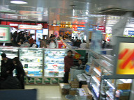 注文したのは、「鉄板蛎油牛肉飯」です。 #蛎の漢字が本当は違いますが。 #あと、鉄板もちと違いますね。 #でも、日本語で書くならこんな感じではないでしょうか。 オイスターソースを使った牛肉炒めと、ご飯のセットでしょうか。 ピンインは、tie(3)ban(3)hao(2)you(2)niu(2)rou(4)fan(4)ですかね。 まぁ、なかなか、おいしかったです。 でも、最近気になるのは、火鍋にしろ味千ラーメンにしろ、どうやら、 味の素が入っているという話らしいので、なんかこれにも 入っているような気がしてたまりません。 私の舌はあまり敏感ではないので、味の素の味が よく分からないのですよね。 でも、外食には、概ね入っているという話もありますので、 これにも入っていたような気もしますねぇ…。 まぁ、気をつけたいところです。 つーか、気をつけてもどうしようもないですけどね。 ヘンなのが蓄積しないようには、したいですねぇ。 ![]() 今回もまたデザートを食べることにしました。 ![]() さっきは、飲み物がなかったので、今回は、ミルクティ っぽいのに粒粒が入ったやつを頼みました。 これは、日本のコンビニにもあった飲み物だと思います。 台湾発祥の飲み物ですかね。 粒粒が結構入っていて、しかも、粒が大きくてかな〜り もちもちしているので、食べるのが意外と大変でした。 そのまま飲み込むのも、ちと気が引けますしね。 きちんと食事したあとに、この粒粒はちと余計でしたね。 ![]() 食事をした後に、電脳城を見て回りました。 地下1階から地上4、5階ぐらいまでを見て回ったと思います。 地下1階から3階までは、主に、MP3プレイヤ、ノートPC、デスクトップPC、 周辺機器、CD−R等のメディア、ゲームなどのソフトがありました。 4階、5階はTV、携帯などがあったと思います。 ここは、小さいお店がたくさん集まって、商売しているような感じですね。 なので、1フロアを見回ったらあとは、だいたい似たような印象を受けました。 まぁ、むしろ、上海のデパートやプラザ全部がそんな感じですね。 いや、それいうなら、日本も一緒か。 でも、日本より、バラエティが少ない気がしましたね。 どこに行っても一緒だから、一番近くのデパートやプラザでいいやって ことになりそうですね。 あと、4階に書店があったと思います。 5階に映画館があるのかな。 今日は、この電脳城で、以下のものを購入しました。 ・スパイダーマンのVCD 15元 ・2004年ヒットソング集(CD3枚組) 25元 ・中国の月刊誌のマンガ 9.8元 ・ゲーム(格闘ゲームがたくさん入ったやつ) 15元 ・ガンダムSEED(PCで見るやつ?) 18元 ・マクセルのCD−Rメディア(10枚) 50元 CD−Rのメディアの1枚の値段を聞いて回ったのですが、 ケースなしで、ソニーやマクセル、TDKあたりのが、だいたい2元ですね。 ケースつきで、だいたい5元でした。 また、私が持っているアイリバーのiFP-799の値段を聞いたのですが、 2450元でした。 日本円換算で、33075円でしょうか。 日本では、確か29800円ぐらいで買えたと思います。 ちょっと高いですね、こっちの方が。 4階の書店に行ってみたのですが、マンガがほとんど見当たらないですよね。 ここが、日本と大きく違うと思います。 まじめな本ばっかりではないでしょうか。 かろうじて、ほんの少しマンガがあったので(あるとは思わなかった) 試しに見てみたのですが、あまり育ってはいなさそうでしたね。 マンガという文化は。 マンガを読んでいる人は自分以外に誰もいなかったですしね。 あと、立ち読みされて、ぼろぼろになった本が結構目に付きました。 これは商品として成り立つのだろうか?、と思えるようなのもちらひらと 目に付きましたねぇ。