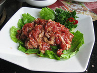 これは、奥に見えるパン生地に、 手前の料理をくるんで食べます。 ![]() 羊肉串(ヤンロウチュアン)です。 よく道端で売っていますが、それと同じやつです。 ![]() これは、野菜サラダですね。 意外と美味しかった。 ![]() 3人して美味しく食事ができました。 う〜む、満足じゃ。 お値段は、一人頭70元ぐらいだったと思います。 たくさん美味しく食べれて、この値段とは…。 かな〜りお得ですよね。