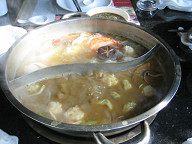 一旦、静安寺を後にして、食事をしに行きました。 とあるガイド本に載っていた、火鍋屋さんへと行きました。 ![]() 実に美味しそうです! ![]() 手前は、ピーナッツ味噌味で、奥は普通のシンプルなお味でしたね。 今まで、火鍋を2回食べたのですが、ここの火鍋は清潔だし、味の素も 量がすくなかったと思いますし、実に良かったですね。 美味しかったです。 でも、その分お値段は高かったですが(笑)。 一人頭、150元ぐらいかなぁ? 普通、火鍋は60元ぐらいで済むと思います。 そういえば、ここは個室ですしね。
