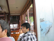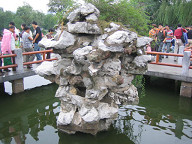 そして、再び船で移動します。 2つ目の島へと移動します。 ![]() 2つ目の島へと到着しました。 どうやら、この島には湖があるようですよ。 ![]() 湖の中には、こういった奇岩がいくつか置いてありました。 また、この湖は、上空から見ると「田」の字をしているそうです。 ![]() 島の中を観光中です。 島のあちこちで記念撮影をしている人がたくさんいましたよ。 ![]() 奇岩です。 ![]() 途中で、とある食べものを買いました。 ちょっと甘くてどろっとした食べものです。 ![]() こういう名前がついていました。 みんな食べていて、おいしそうに見えたのですが、 まぁ、たいして美味しくはなかったですね…。 1つ5元でした。 ![]() 近くでは、変装写真(?)を撮っている(撮らされている?) 子供がいましたよ。 ![]() また、オウムもいました…。 二匹とも結構大きかったです。 ![]() これが、この島の名前だと思います。 そして、この島を後にして、湖の南西の湖岸へと移動しました。
