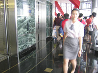 黄浦江には、いつも通りたくさんの船が往来していました。 ![]() 一通り見回ったので、エレベーターで降ります。 ![]() エレベータに乗り込みました。 奥には、このようにビルの絵と、エレベータの位地を表す 赤いマークがありました。 ![]() エレベータの入り口の様子です。