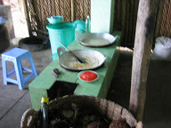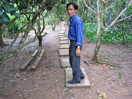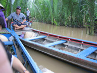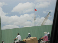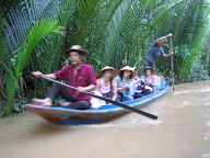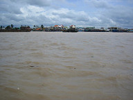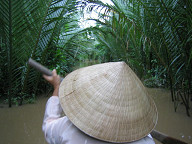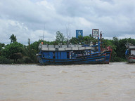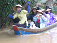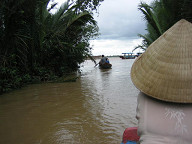 これは何だっけか? お酒かな? ![]() ハチミツやお菓子です。 お土産として買えるようです。 ![]() タロイモチップス。 ![]() ちなみに、周りはすごいハチが多くて、 このようにスキあらば、我々の食べものを 頂こうと飛びまくっていました。 気がついたら、1匹のハチがローヤル ゼリーを一生懸命食べてました。 ![]() そして、再び移動します。 お土産屋さんがありますね。 買う人があまりいないせいか、店員は声はとりあえず かけるけど…、といった感じでした。 ![]() おや、ニワトリ発見! ![]() これは、ちょっと面白いですね。 ココナッツの実で作ったおサルさんですね。 ![]() ミッキーマウスのお土産があります。 街中でもよく見かけます。 ![]() さらに移動します。 民家っぽいのがありましたよ。 ![]() 移動中です。 ![]() パイナップルが木にぶら下げてありました。 ![]() パパイヤもありました。 ![]() 休憩所があります。 ![]() どうやら、ここでフルーツを食べれるようですね。 バナナやパイナップル、龍眼。 ![]() ドラゴンフルーツ。 ![]() パイナップルを食べてみました。 うむ、美味しいです。 ![]() ドラゴンフルーツです。 ![]() パパイヤです。 これは、ちょっとイマイチだったかも。 ![]() 龍眼です。 味は普通かなぁ。 ![]() 果物を食べてたら、なにやらおじいちゃんや ちっちゃい子が現れました。 なんだ? ツアーメニューの中に、民族楽器演奏という項目がありましたが、 どうやらこれがそれのようですね! 意外な展開にちょっと驚きました(笑)。 #思いっきりネタバレですね…。 ![]() そして、おじいちゃん達の演奏に合わせて、 ちっちゃい子が唄いはじめましたよ! ![]() その次は、女性人のようです。 ハモッていました。 ムービーはこちらからどうぞ。 そして、いくつかの演奏が終わり、 最初の小さい子が、近寄ってきたと おもったら、どうやらみんなからチップを もらうようですね。 そういう段取りなのか…。 ということで、私も少しあげました。 ![]() 気がついたら、フルーツはハチの群で一杯です。 パイナップルなどは、もう食べれないですねぇ。 ![]() ショーも終わりしばらく休憩です。 ワンチャンがいましたよ。 ![]() 欧米人もいました。 ![]() 付近を見ていたら木の苗が植えてありました。 ![]() 育ったらこのようになるのでしょうね。 ![]() ガイドさんと共に再び移動します。 ![]() ざぼんです。 ![]() バナナです。 ![]() パパイヤです。 ![]() どうやら今から手漕ぎボートに乗るようですね。 ![]() ボートに乗り込みました。 二手に分かれるようです。 ![]() 我々の船の運転手です。 ![]() 出発します! なかなか、いいんじゃないっすか! ムービーはこちらからどうぞ。 ![]() 水面です。 ![]() おばちゃんが漕いでますね。 後ろにも漕ぎ手がいました。 ![]() 周りを見渡してみます。 ![]() どんどん進みます。 ![]() 民家を発見! ![]() 民家です。 ボートが着けてあります。 ![]() おや、対向船が現れました! ![]() 我々のもう1つの船が追い越していきました。 なぜかガイドさんも漕いでいます。 ![]() 対抗船には欧米人が多かったように思えましたよ。 ハロー!、とか言ってましたね。 ムービーはこちらからどうぞ。 ![]() また現れました。 結構いますね。 ![]() おや、メコン川が見えてきました。 メコン川にこのまま出るのですかね。 ![]() どうやらこのまま乗って来た船に戻るみたいです。 ![]() 船へ向けて移動します。 ![]() 我々が乗ってきた船が見えてきました。 ![]() たどり着きました。 船へと戻ります。 ![]() おばちゃん達はボートを漕いで帰っていきました。 ![]() 戦場に乗り込みます。 雨がポツポツと降ってきました。 ![]() 船で戻ります。 メコン川クルーズももうすぐ終わりですね。 ![]() 戻る途中、ココナッツジュースをもらいました。 飲んでみましたが、結構美味しい、と思ったのですが、 なんか舌が少しヒリヒリします…。 なので、全部は飲みませんでした。 ![]() また、砂を運ぶ船が見えました。 ![]() そして、しばらくして元の船着場へと戻ってきました。 ![]() 水面の様子。 ![]() 到着です。 いやぁ、なかなかおもろかった! ![]() 駐車場へと戻ります。 ![]() 車の乗って、ホーチミンへと戻ります。 ここから、約1時間半ぐらいかかるようです。 到着は午後4時頃でしょうか。 どうやら各自のホテルまで送ってくれるようですね。 ![]() 移動中です。 ベトナム旅行も今日で終わりです。 ホテルから午後10:30には空港へ向けて出発する予定です。 でも、午後:00にホテルについてから午後10:30まで しばらく時間があります。 まだ、少しどこかを観光できそうです。 ![]() 移動中です。 おや、コンビニらしき看板を発見。 ![]() しばらく移動していたら、途中、料金所みたいな 所に入っていきました。 ![]() 高速道路か?、と思ったのですが、 どうも違ったようです。 ![]() ここはどうやら、台湾、香港、ベトナムが出資して 開発している開発区のようです。 道路は有料道路だったのですかね。 ![]() おや、これは、開発区内のマンショ