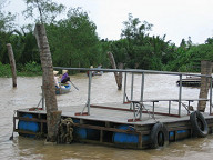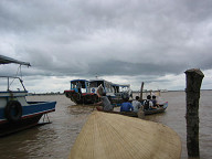 ![]() 駐車場にはたくさんの観光バスが停まっています。 ![]() トイレ休憩です。 ![]() そして、いよいよ船へと乗り込みます。 楽しみですね! ![]() メコン川はこんな色です。 茶色ですね。 ![]() 船に乗り込みました。 船内からメコン川を見たところです。 さすがに広いですね。 ムービーはこちらからどうぞ。 ![]() 船で移動中です。 ![]() 船が往来していました。 ![]() 右手を見てみます。 ![]() 水面を見てみました。 ![]() 船が停泊しています。 ![]() 漁船でしょうか。 ![]() 川の中央に島がありました。 ![]() さらに対岸へ向けて進みます。 ![]() 船内の様子です。 ![]() こういった船が数隻、ロープで大きい船を 牽引していました。 ![]() 牽引しているのはこれです。 ![]() うわ、結構デカイ。 ![]() つーか、近いんじゃ? 大丈夫なのか? ![]() 遠ざかっていきました。 ![]() この船は、砂を運んでいるそうです。 ![]() 再び船が移動し始めます。 ![]() 右手奥の方を見たところです。 より川下の方ですね。 ![]() 小屋がありました。 魚を養殖しているようです。 ![]() そして、目的地へと到着したようです。 ココナッツキャンディー工場があるそうです。 ![]() 船をつけて上陸します。 ![]() 上陸しました。 いきなり、ココナッツキャンディーを作っている 場面に出くわしました。 写真は、ココナッツの汁ですかね。 ![]() この器械で、汁を取り出すようです。 工場と書いてありましたが、めちゃめちゃ家内制手工業ですね。 ![]() 作りたてのココナッツキャンディーです。 作りたてのせいか、なかなか美味しいです。 ![]() キャンディー制作現場のようです。 ![]() 作ったばかりのキャンディー。 ![]() キャンディーを制作中です。 ![]() これは、お土産用のキャンディーです。 1つ2USDぐらいだったかな? ![]() 歩いて移動です。 ![]() 途中、お土産屋さんがありました。 市内でもよく見かけるものばかりです。 ![]() 木工製品です。 嵩張るし、さすがにここでは買わないでしょう…。 ![]() そして、休憩所へと着きました。 ![]() ハチミツ園が近くにあるようで、ここでは ハチミツ製品などをいくつか試食しました。 これは、ハチミツとハーブで作った飲み物だったかな。 柑橘類も少々入れてましたね。 悪くはなかったです。 ![]() バナナや蓮の実、タロイモなどのお菓子。 これは、街中のスーパーでも売ってありますよね。 バナナが一番美味しかったです。 ![]() ローヤルゼリーです。